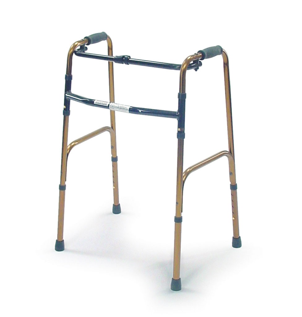 Foto von einem messingfarbenen Gehgestell